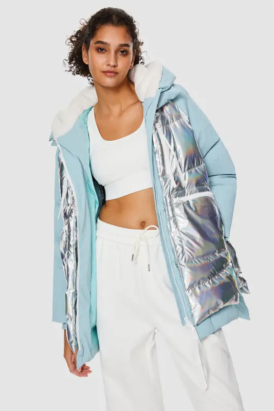 - Radiate glamour in our vibrant winter down jacket, suitable for skiing or snowman-building. Stay warm and stylish while enjoying the magic of winter.