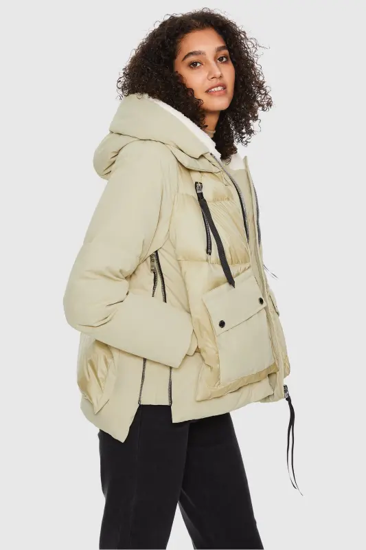 • This 092 Colorlay Cropped Hooded Puffer Jacket boasts exceptional warmth with its 90% duck down and 700+ fill power. The high-quality down insulation ensures excellent heat retention, allowing you to stay cozy and comfortable even in cold weather conditions.