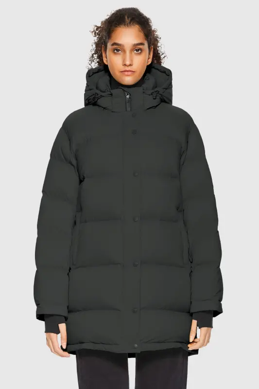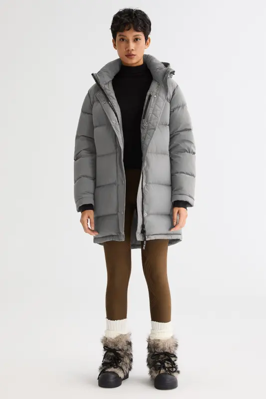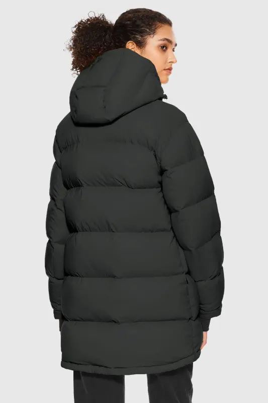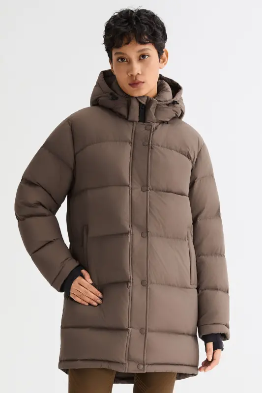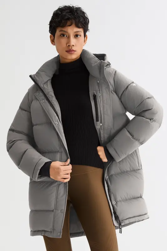 - The back hem of the puffer jacket is slightly longer to provide a greater range of motion.