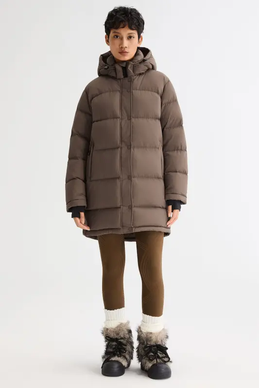 - Filled with 90% white duck down and 10% feathers, this Aurora Midi Lightweight Jacket provides lightweight warmth and exceptional insulation to keep you cozy in cold weather.