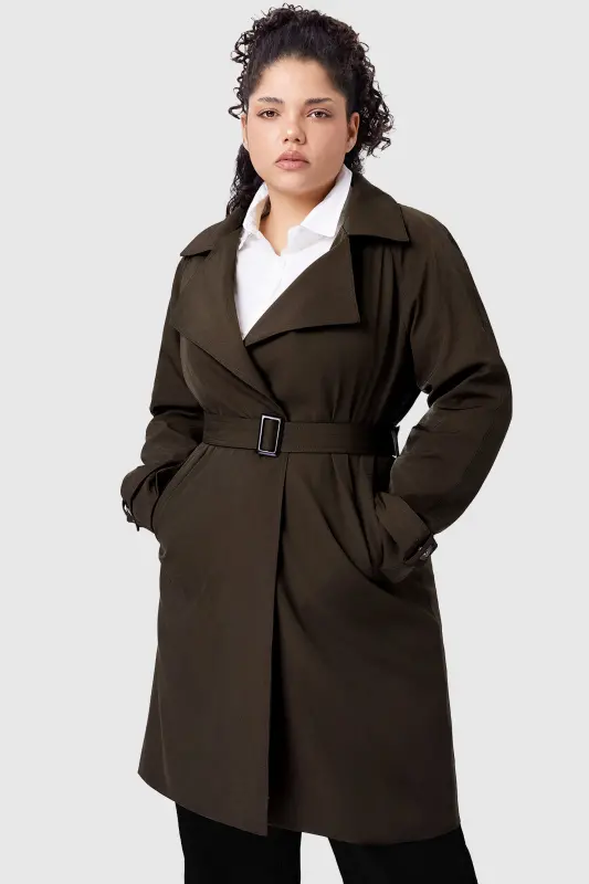 • This mid-length coat is your essential companion for spring and autumn, designed to keep you comfortable in changing weather. Explore our collection of women’s trench coats for a perfect blend of style and seasonal functionality.