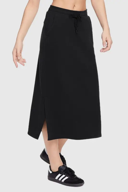 - Crafted from a soft fabric, this women’s drawstring athletic long skirt offers a gentle, soothing feel against the skin, making it an ideal choice for all-day comfort.