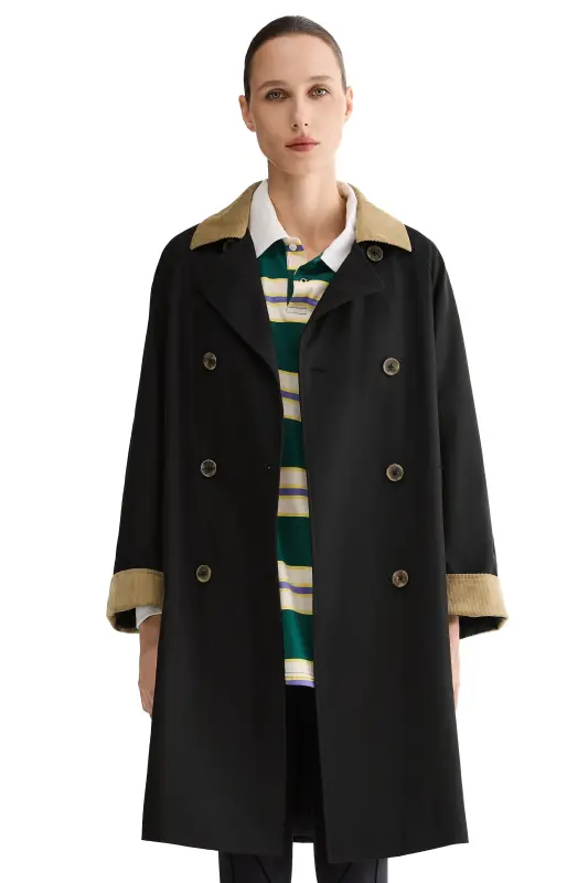 - Functional Design:Featuring a classic double-breasted front, side slit pockets, and a vented back hem, this coat blends timeless tailoring with modern utility—ideal for both workdays and weekends.