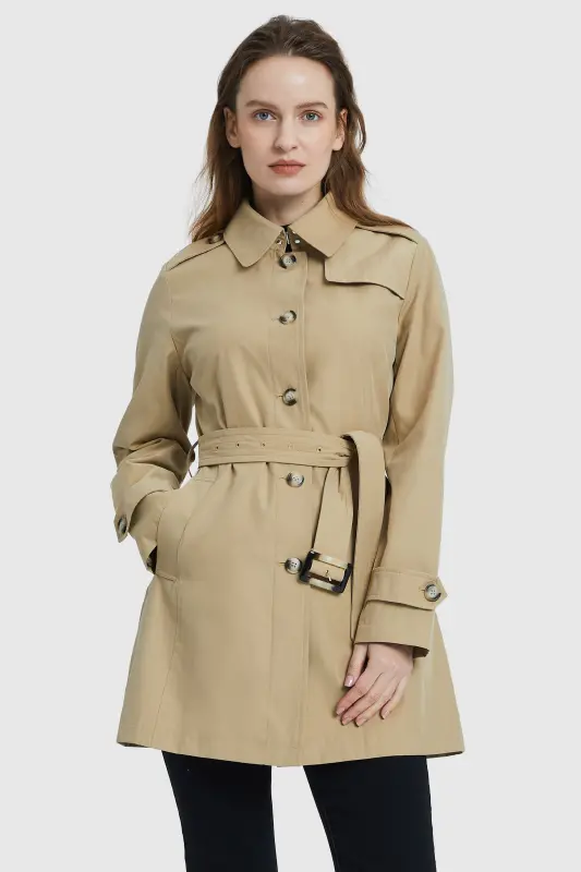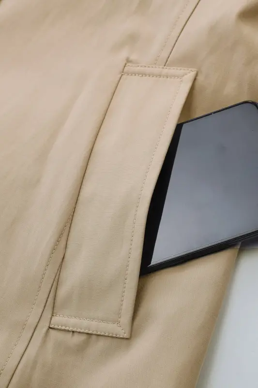 • The trench coat is crafted from water-repellent fabric, which makes it soft, skin-friendly, and breathable. With a single-breasted closure, and 2 side pockets that can help you store your essentials and valuables.