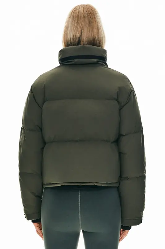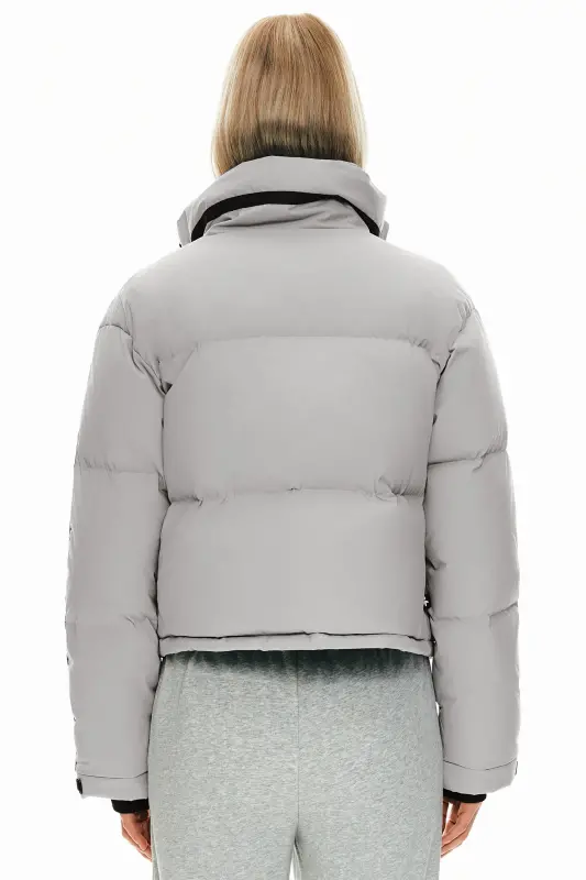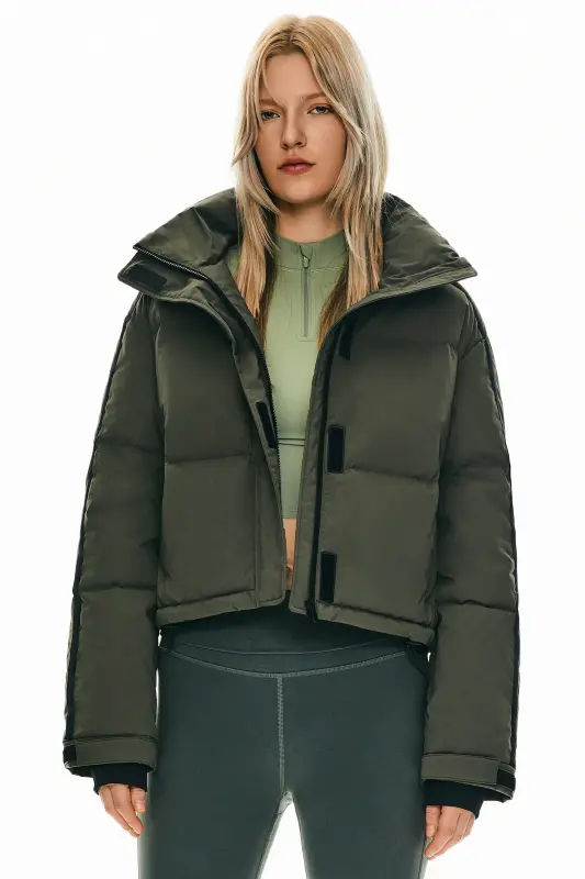 • Stylish Design: The cropped puffer jacket sports a chic color-blocked design with woven accents on the collar and sleeves, making it a fashionable choice for winter outings.