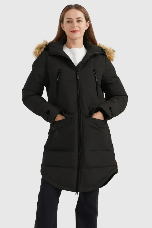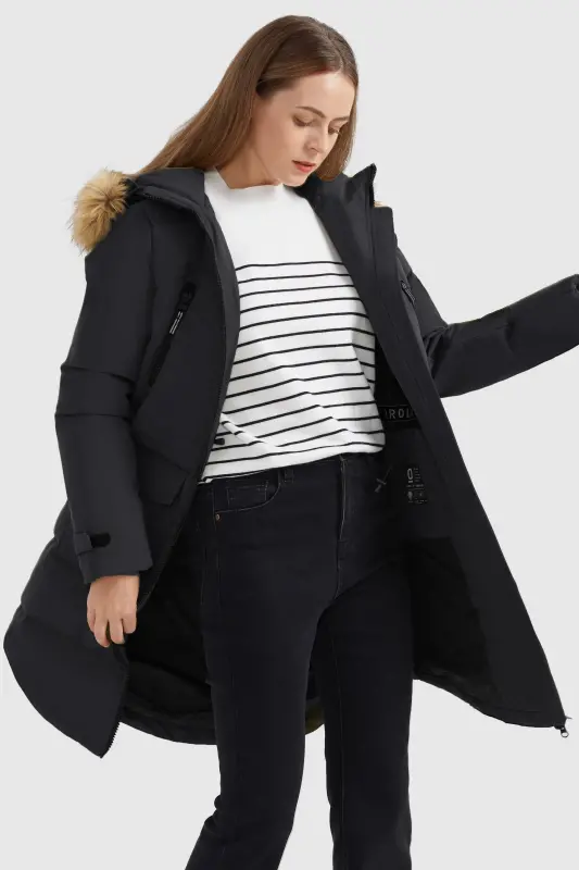 - Threaded cuffs will keep you warm and enable you to enjoy the premier luxury. The big hood with removable faux fur, drawstrings, and buckles can adjust the size better, to keep the hood from falling.