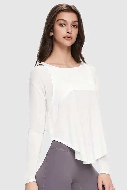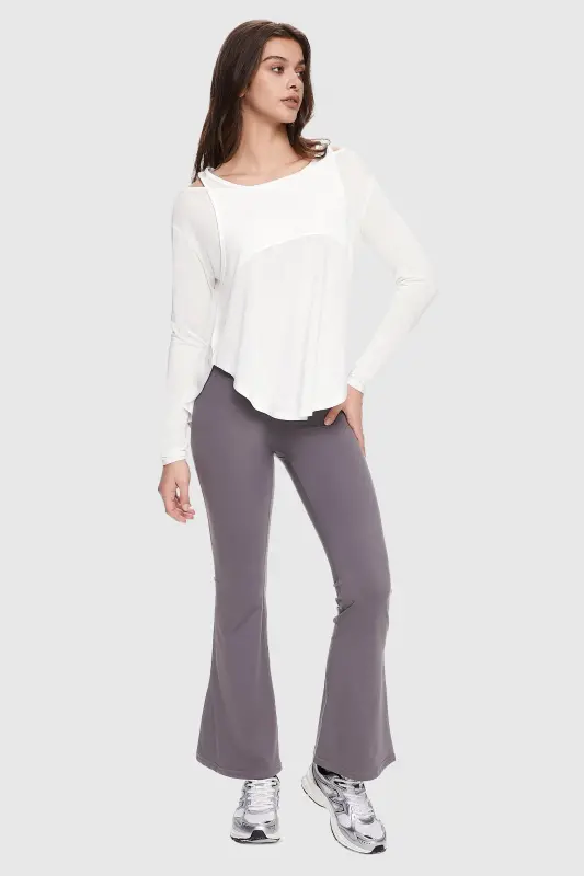 - This athleisure top for women is perfect for both casual and athletic occasions, with a trendy off-the-shoulder design and side split for added flair.