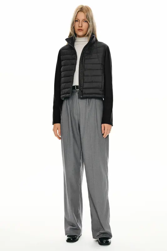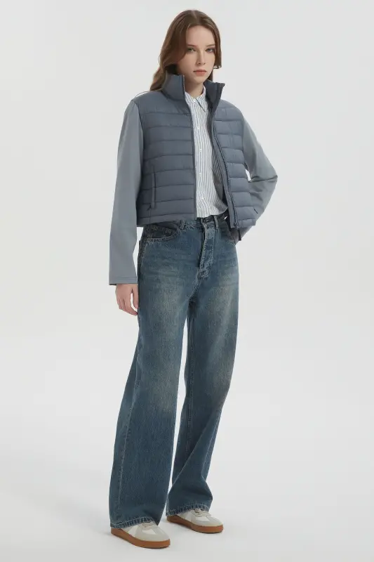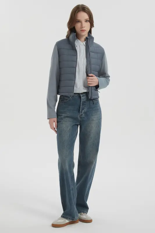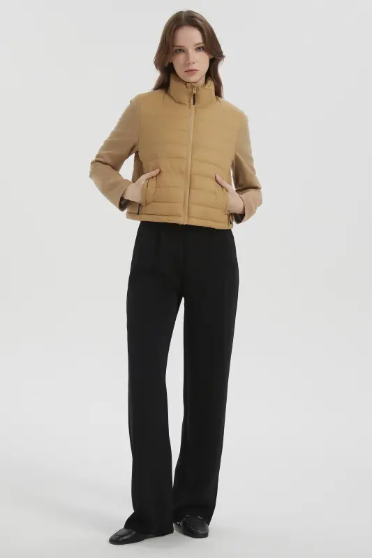 • Stand Collar: The stand collar of the quilted padded jacket, with its protective zipper cover, prevents irritation and shields your neck from the wind.