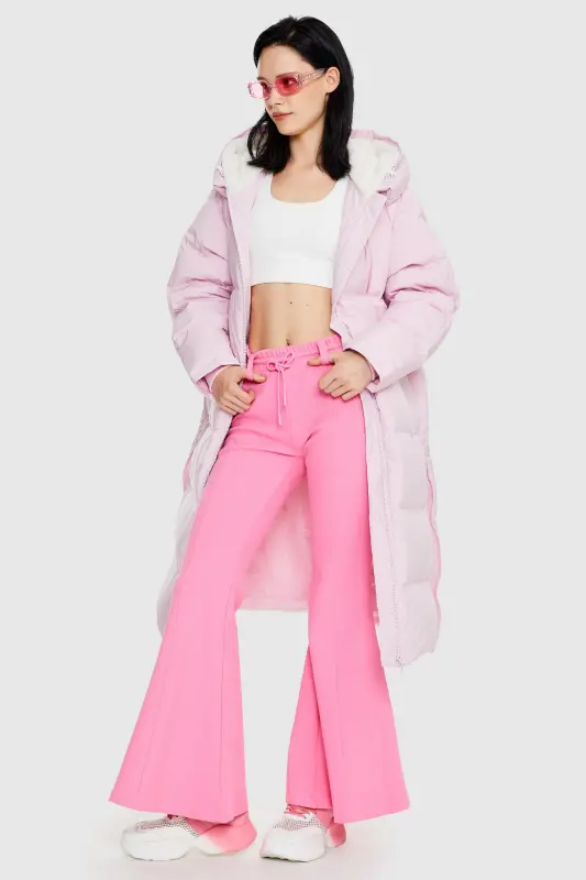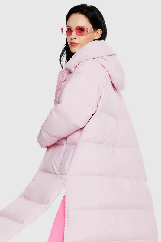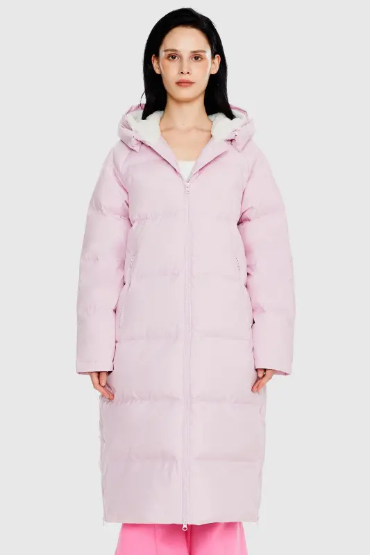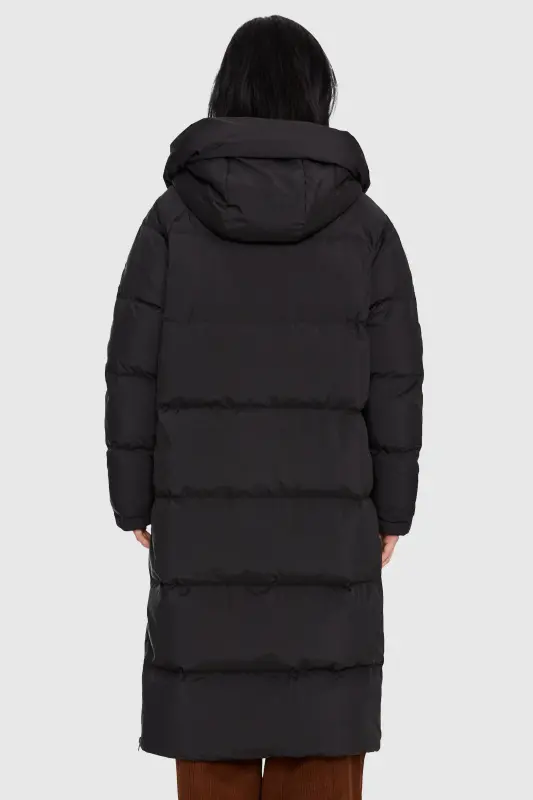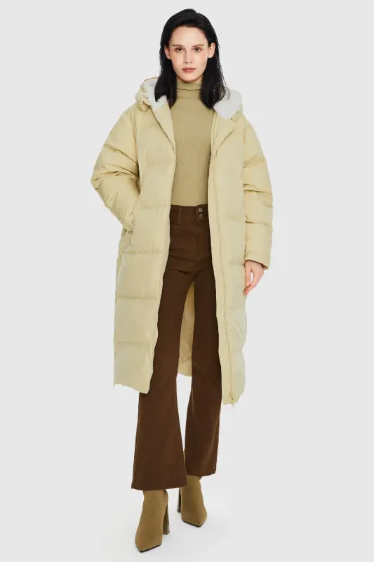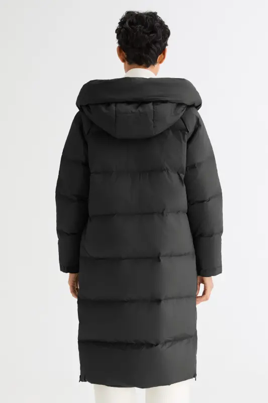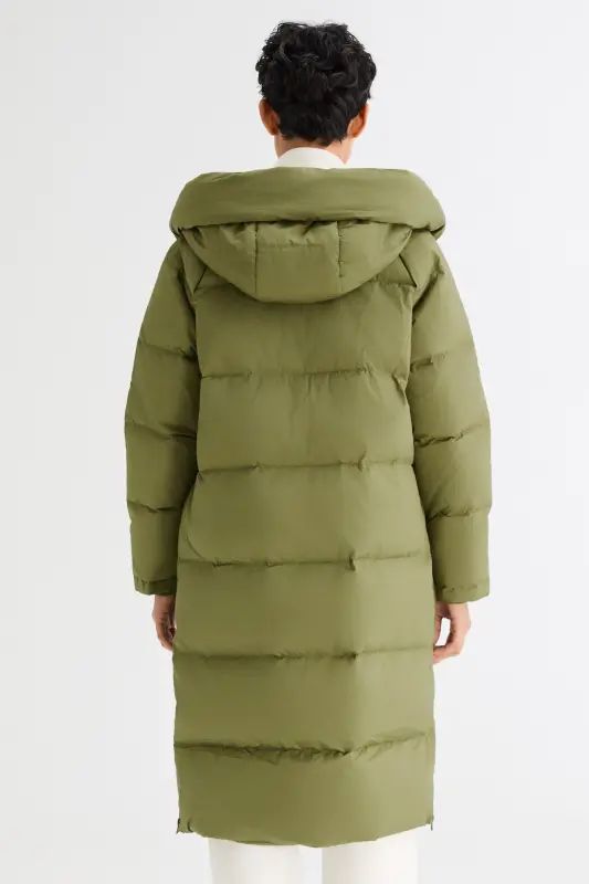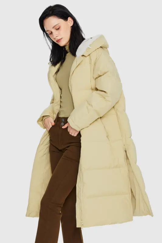 - Our long down jacket is filled with 90% high-quality duck down that provides exceptional warmth in cold weather. The down filling is lightweight and helps keep the jacket slim fitting yet warm.