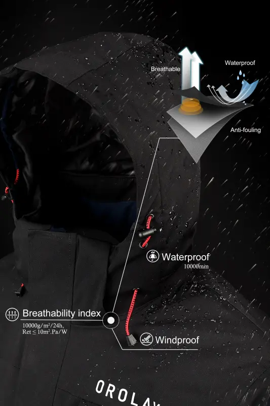 The windbreaker jacket shell with the adjustable and detachable hood, has a high density of textiles, which can prevent the cold wind from entering inside. The outer fabric is waterproof and quick dry. All the zipper designs can effectively resist water or rain, also can fight bad weather, and always keep your body dry and comfortable. Unique contrast color design for this snow jacket, adds some attractive scenes to funny winter activities.