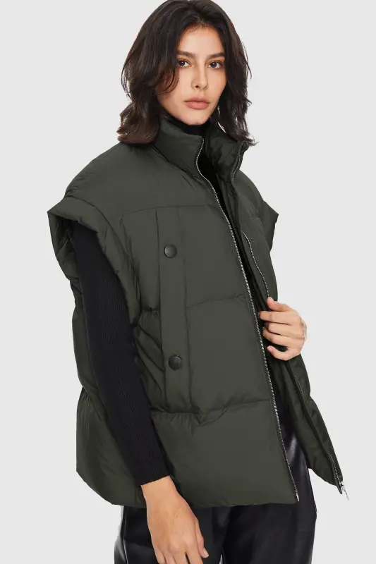 - The puffy cuff adds an extra layer of insulation and gives this puffer vest a casual, laid-back oversized look that is suitable for everyday wear.