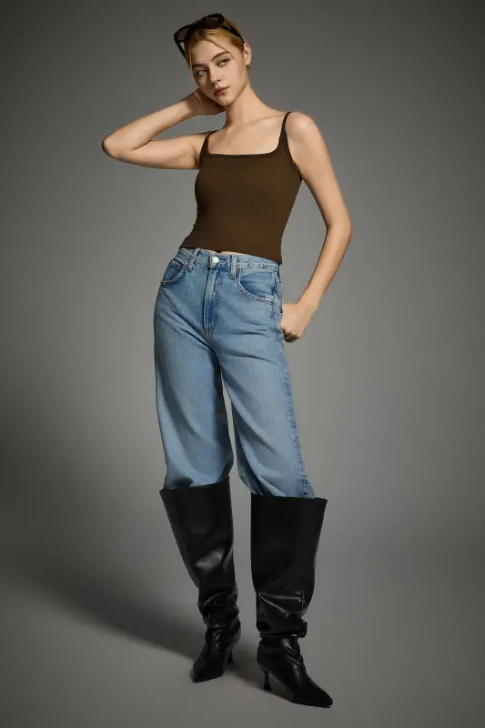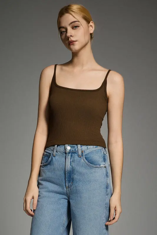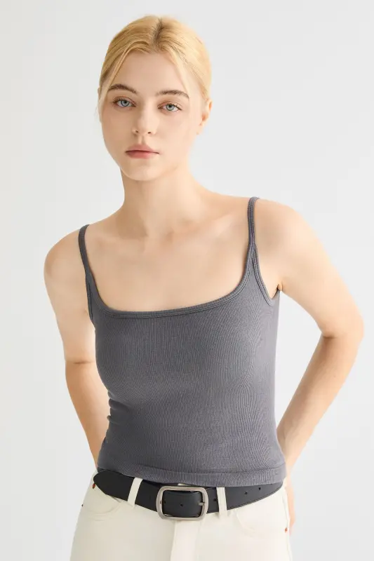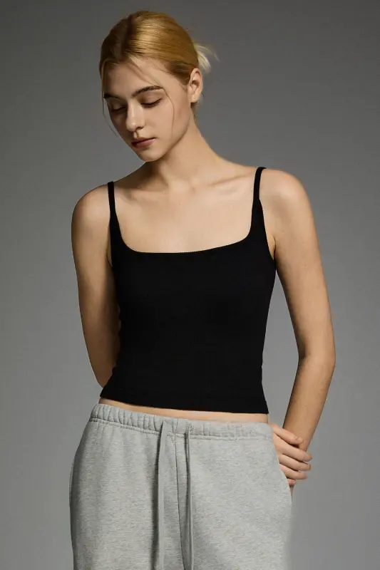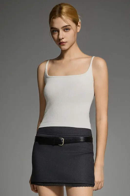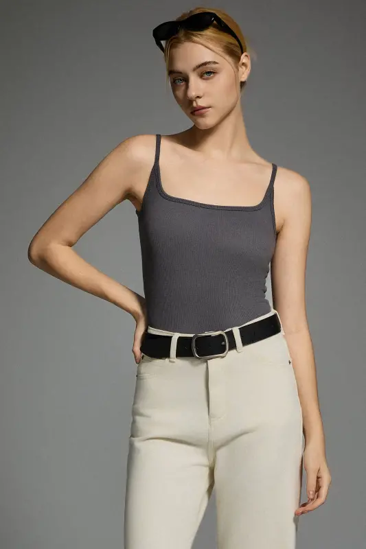 • Premium Stretch Ribbed Knit:Crafted from soft yet structured high-stretch ribbed knit, this tank top maintains its shape while providing a comfortable, form-flattering fit. The reinforced outer edging ensures durability and prevents deformation over time.