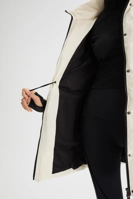 - The storm placket and ribbed knit cuffs help seal out cold drafts and winds, providing added protection against the elements. Stay shielded from harsh weather conditions with this puffer coat for women.