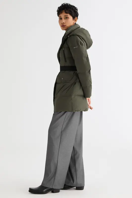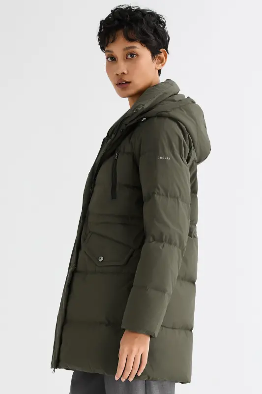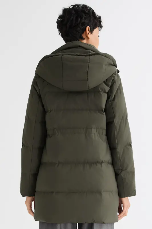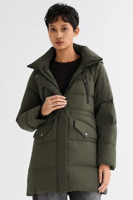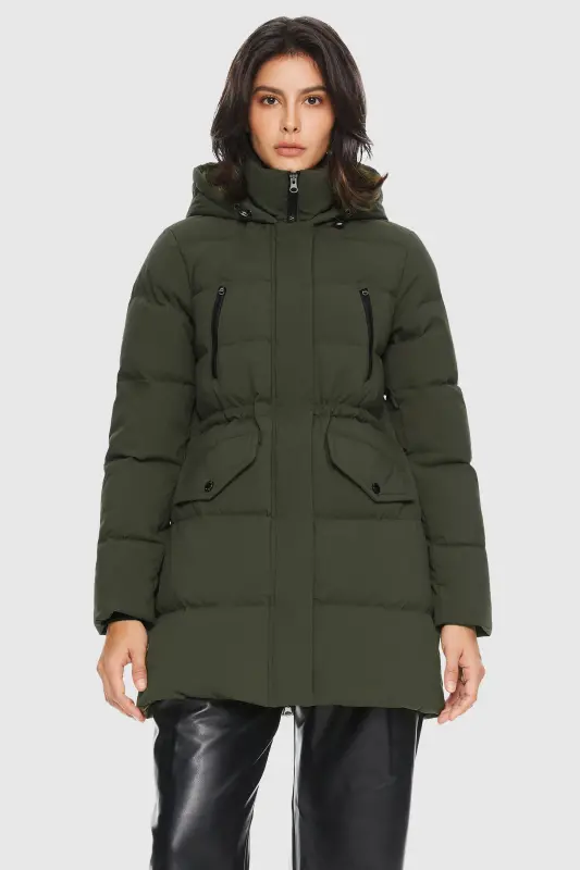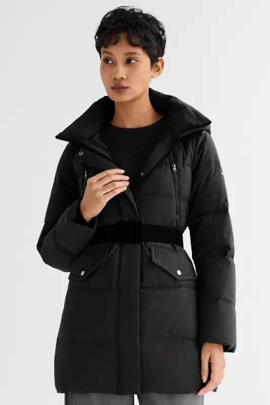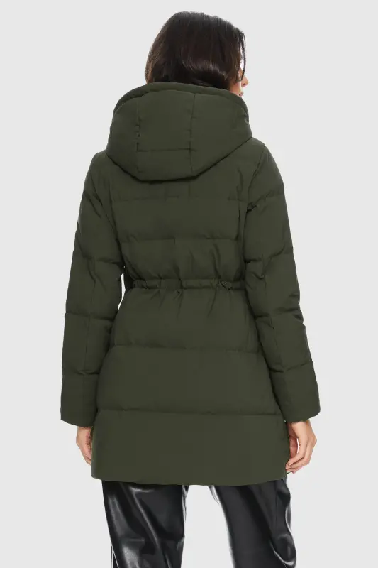 - The drawcord-adjustable hood and elastic drawcord at the waist allow for a personalized fit, adapting to different weather conditions and occasions. Stay comfortable and stylish with the puffy down coat.