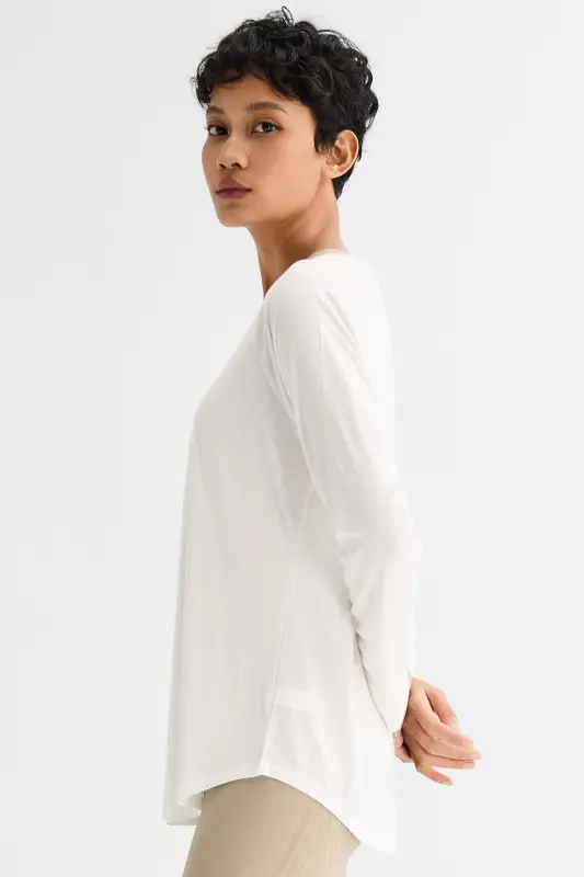 • Versatile Style: This women’s yoga long-sleeve lightweight scoop sheer sun protection t-shirt blends sporty comfort with casual elegance, perfect for both workout sessions and everyday wear.