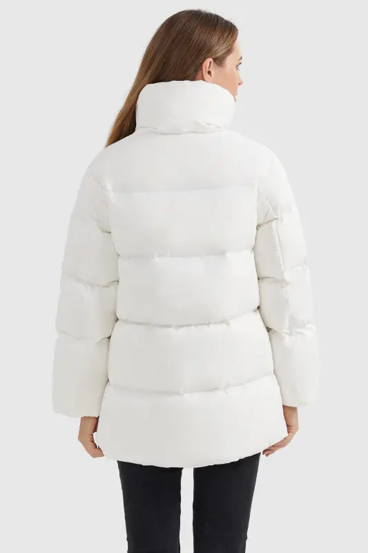 This women’s A-line puffer jacket provides instant, warmth with shiny nylon fabric, an umbrella silhouette, and high-neck stands collar, and comfortable stretch ribbed cuffs. Horizontal quilting adds an aesthetic touch, while two side pockets and one zipper inside the pocket are perfect for storing essentials.This is a seasonal fashion style that pairs effortlessly with everything, from jeans to dresses.